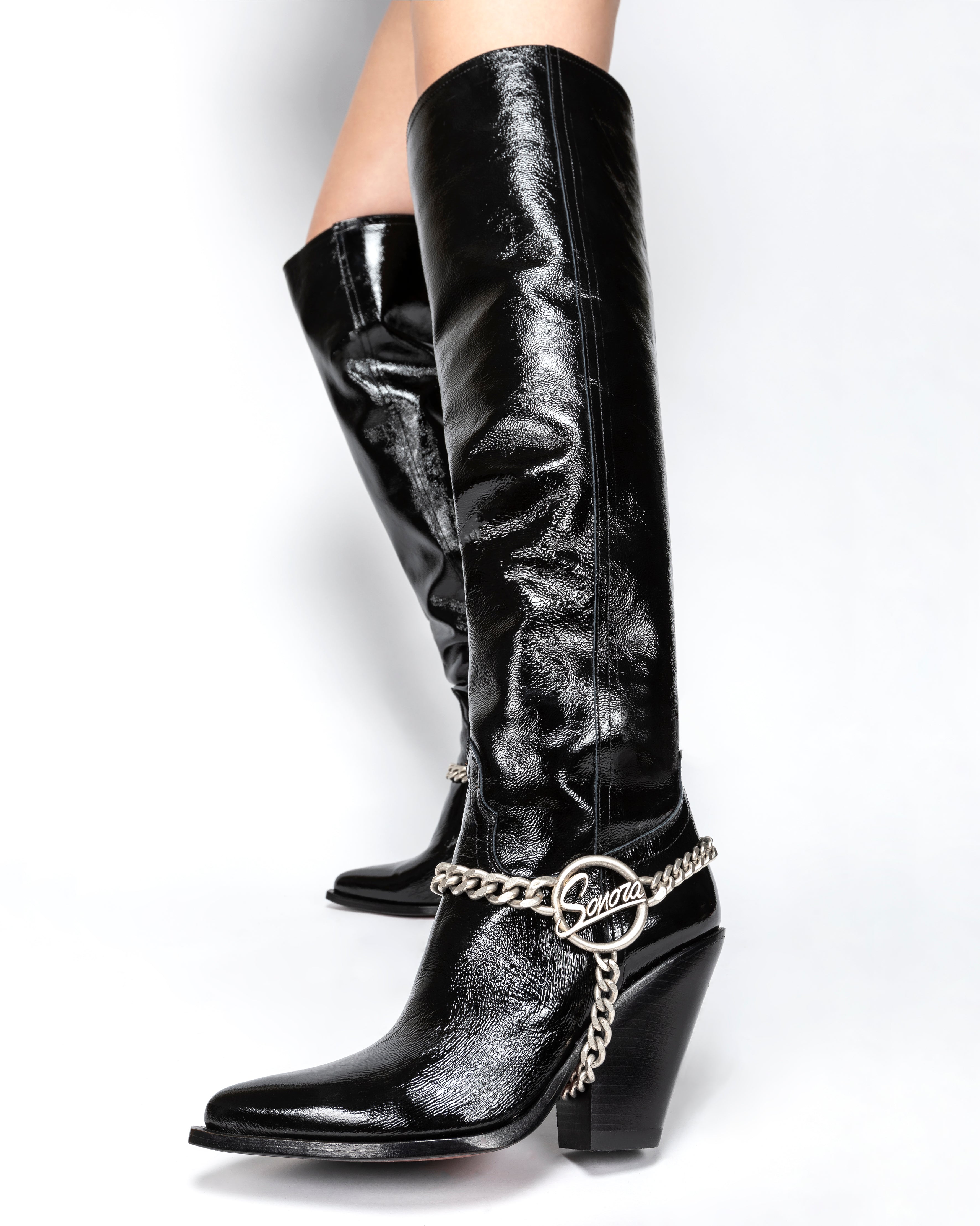 Their sleek silhouette and glossy finish offer a striking balance of sophistication and edge, perfect for making a statement.