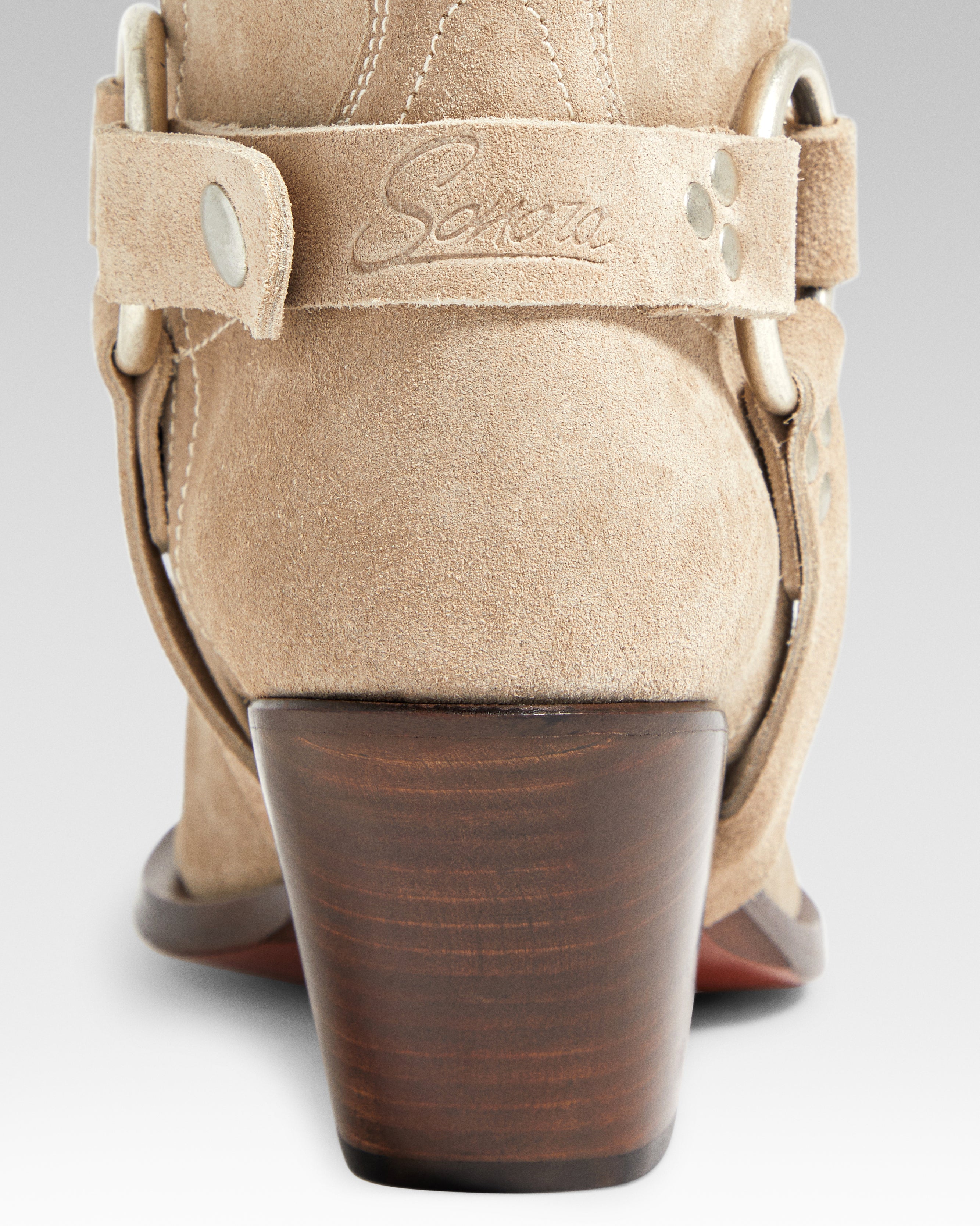 ATOKA BELT Women's Ankle Boots in Taupe Suede | Leather Harness