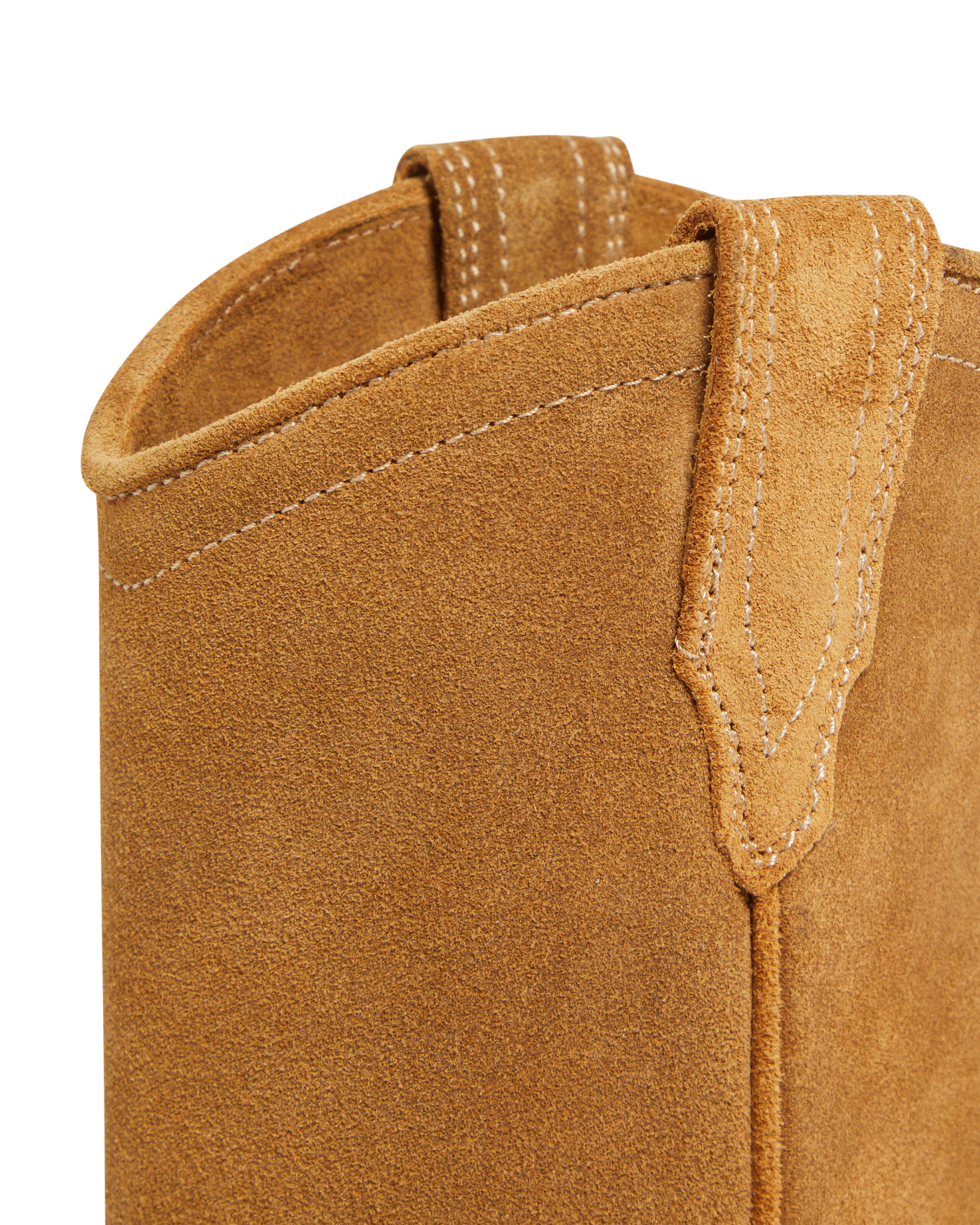 Rodeo references and effortless elegance come together in this new model, the Rancho boots by Sonora – the brand’s fresh take on the classic cowboy silhouette. This ultra-desirable iteration is crafted from brown suede leather and accented with sophisticated Western-style detailing. The sturdy heel gives them a strong attitude.